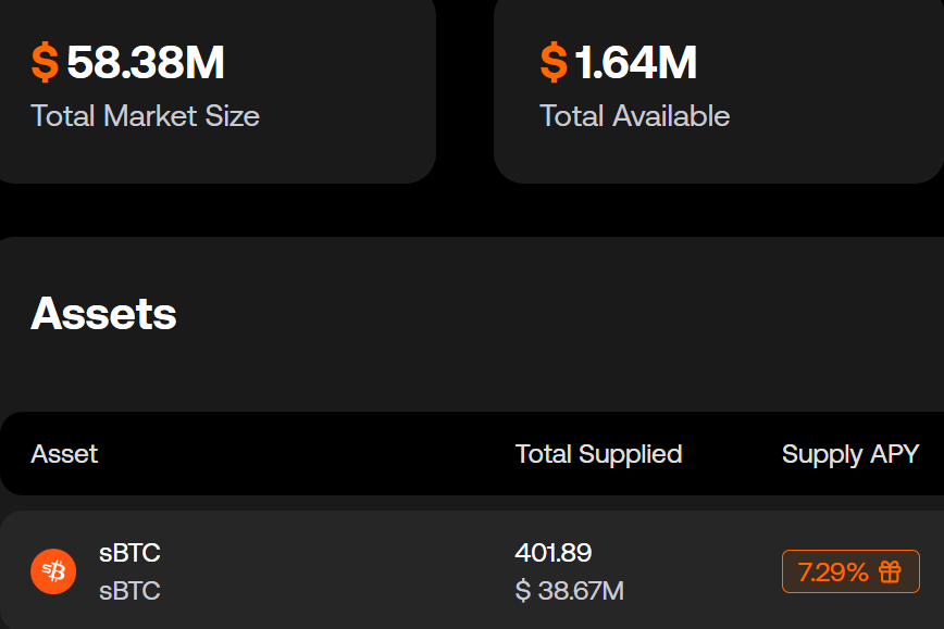 Over 400 sBTC are already supplied. sBTC suppliers are earning over 7% APY and points for Zest’s point program.