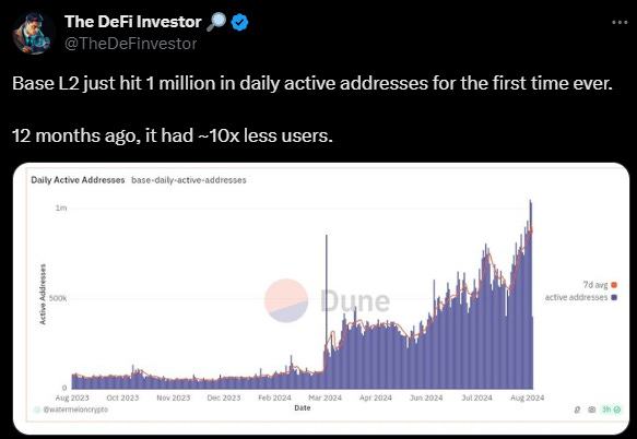 Base Reaches 1 Million Daily Active Addresses