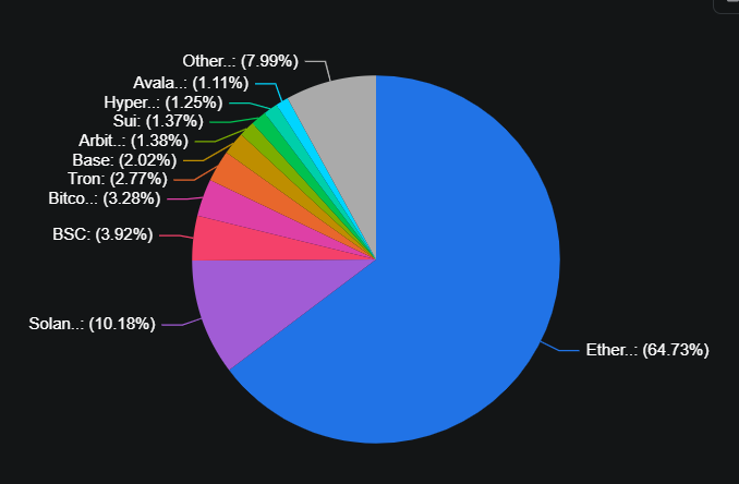 Now? Ethereum TVL leads 30d growth among major chains. TVL dominance charged all the way back: Ethereum holds 65% of all crypto’s TVL, higher than the start of the year and the strongest TVL dominance since September.
