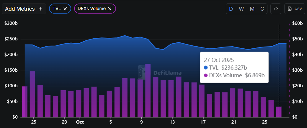DeFi Market Metrics: Global TVL & DEX Volume