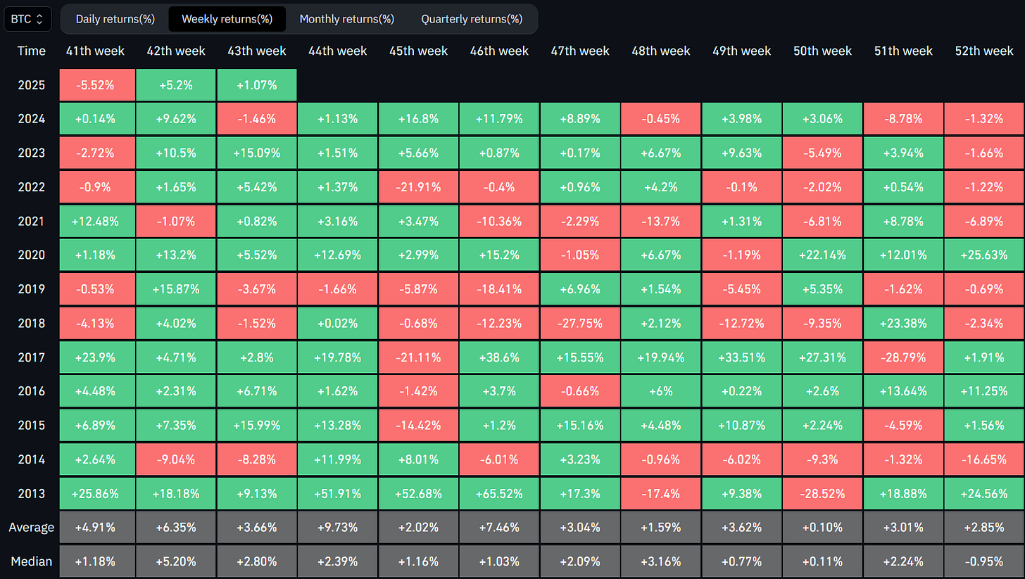 Historical Bitcoin Performance This Week (Week 44)