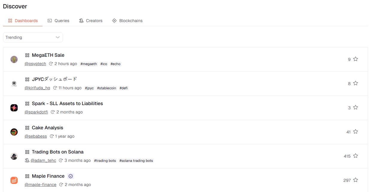 Trending dashboards, usually created to capture current events (like data on the MegaETH token sale)