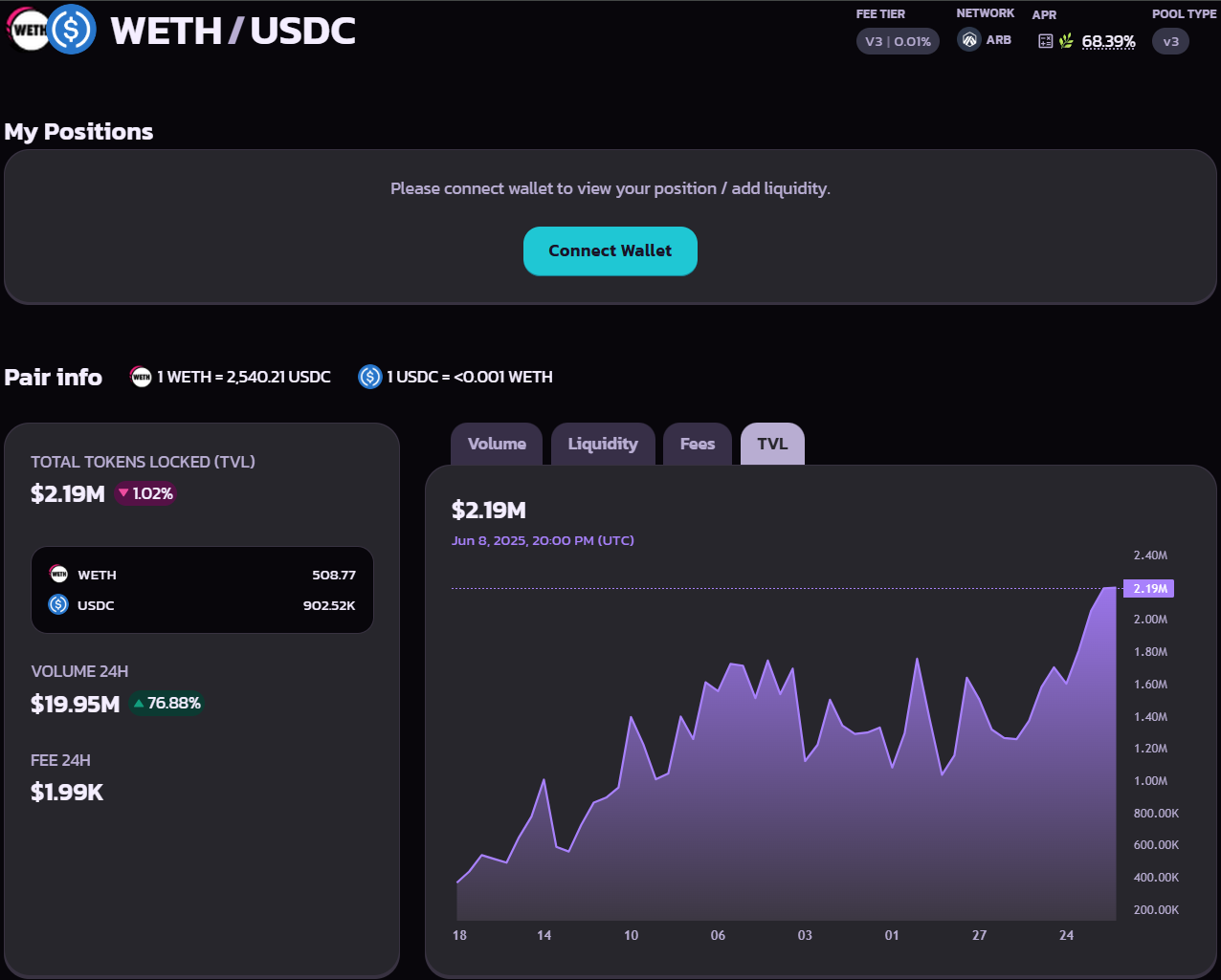 There’s a great yield on WETH on BSC-native DEX PancakeSwap (on the Arbitrum network).