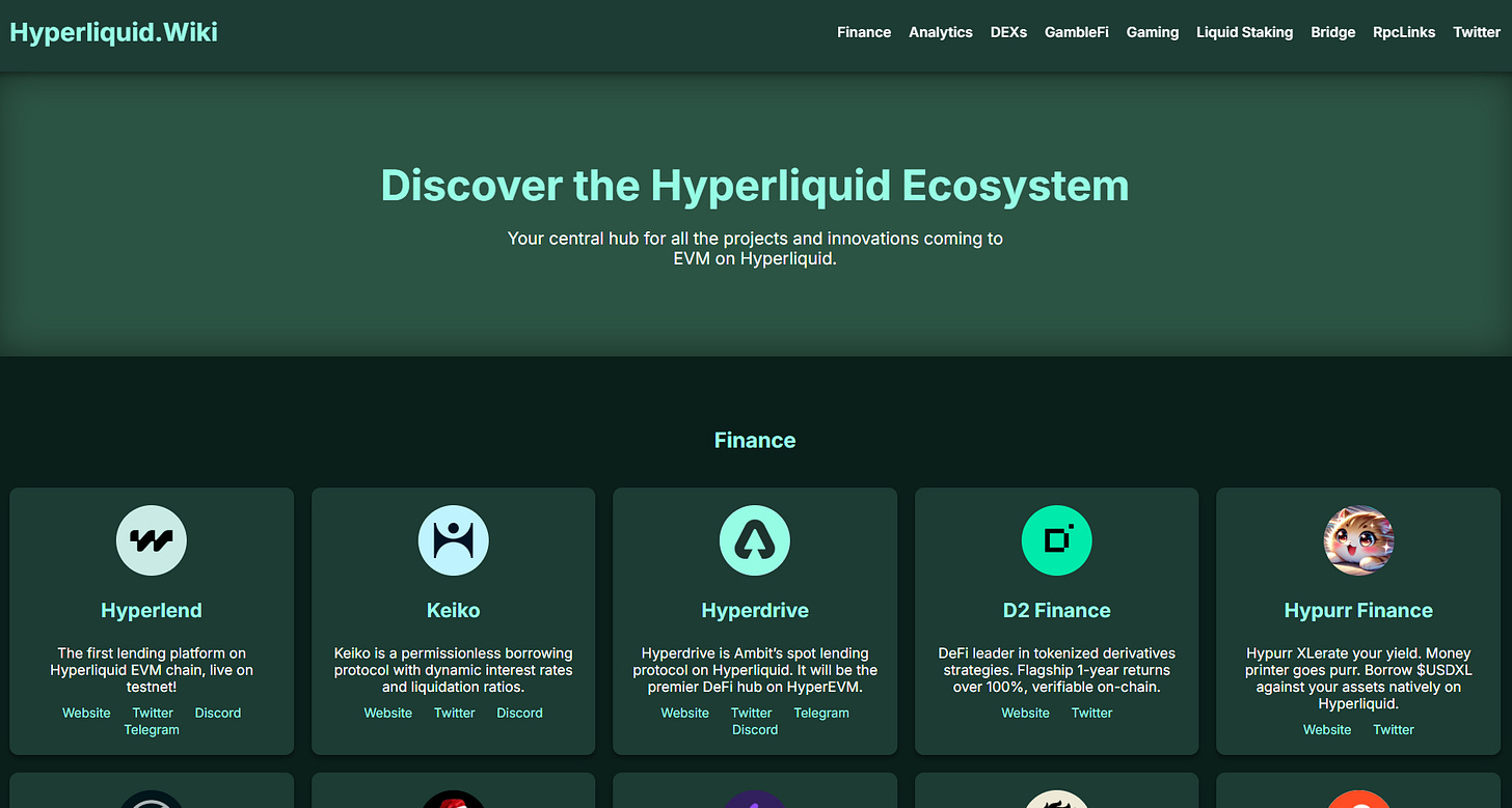 Find the full list of Hyperliquid projects here. There will be more protocol gems in this list, so familiarize yourself with it. We want to find Hyperliquid-native apps.