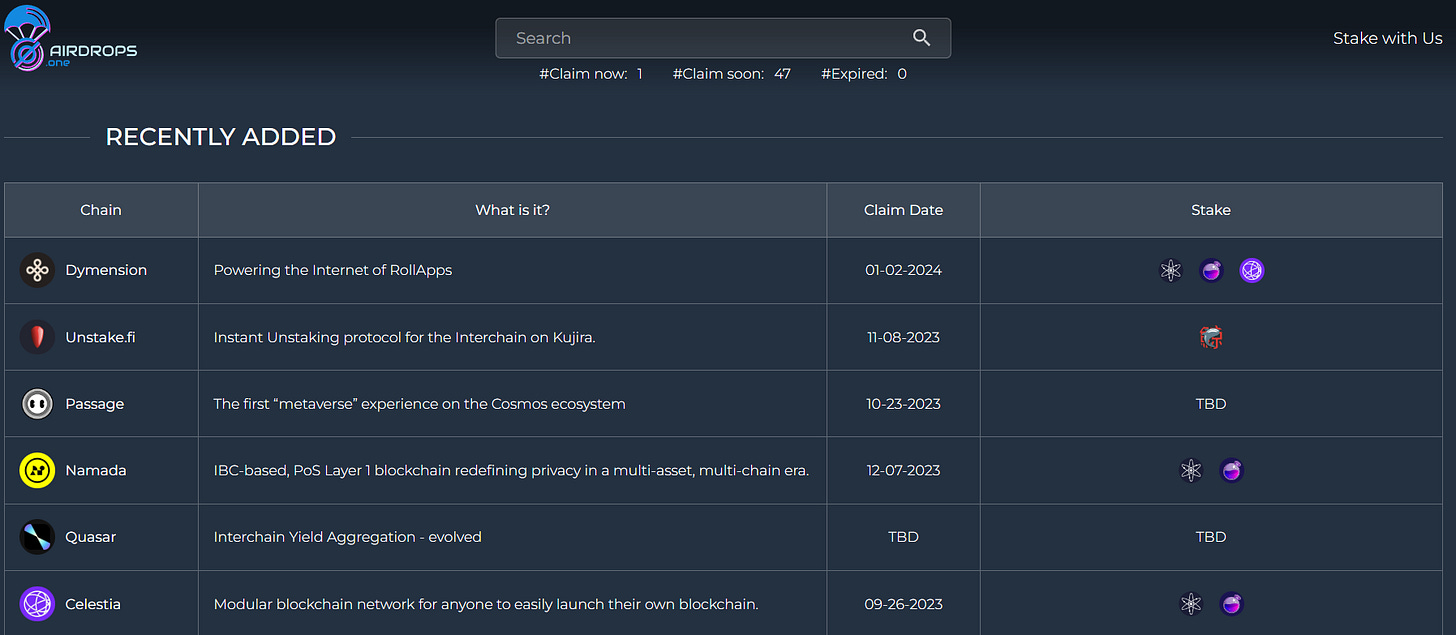 Stakers in the Cosmos ecosystem have received a plethora of airdrops recently. And there have already been several announced in 2024. However, a lot of these airdrops have expiration dates. If you’re staking in Cosmos, use Airdrops One to keep on top of all of the latest airdrops.