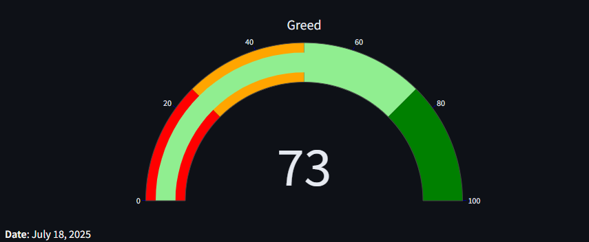 I created a website to track Fear & Greed with more detail. Check it out here. Today’s value is 73. Given how the market has performed over the last two weeks, it’s a healthy sign to see this indicator in Greed territory and not Extreme Greed. That said, we’re only a few points away from Extreme Greed.