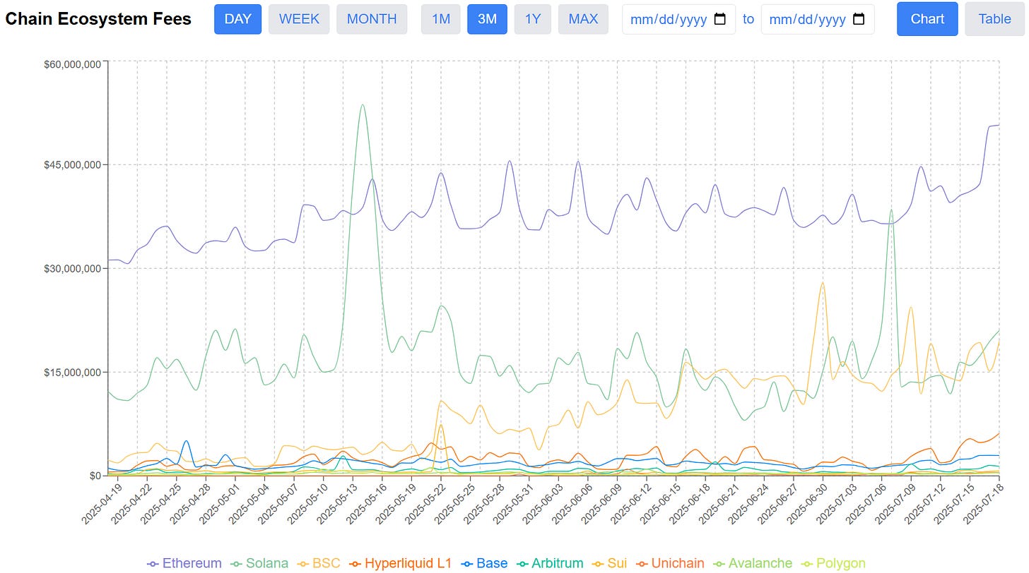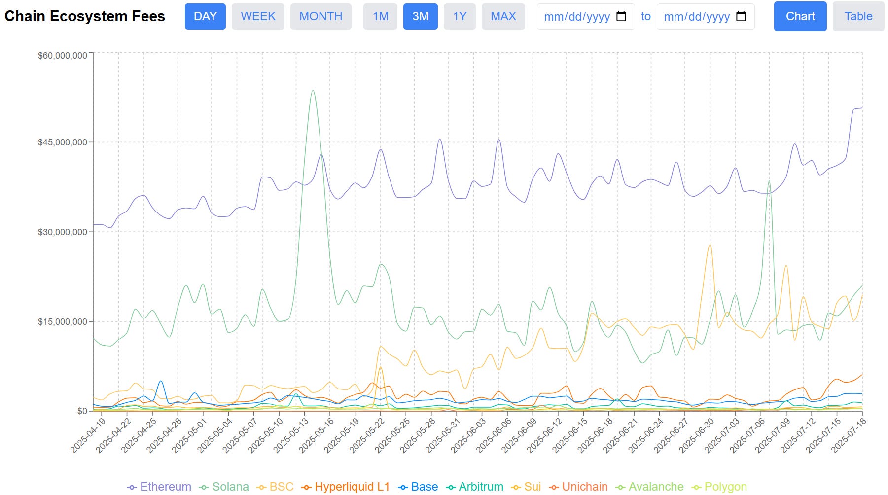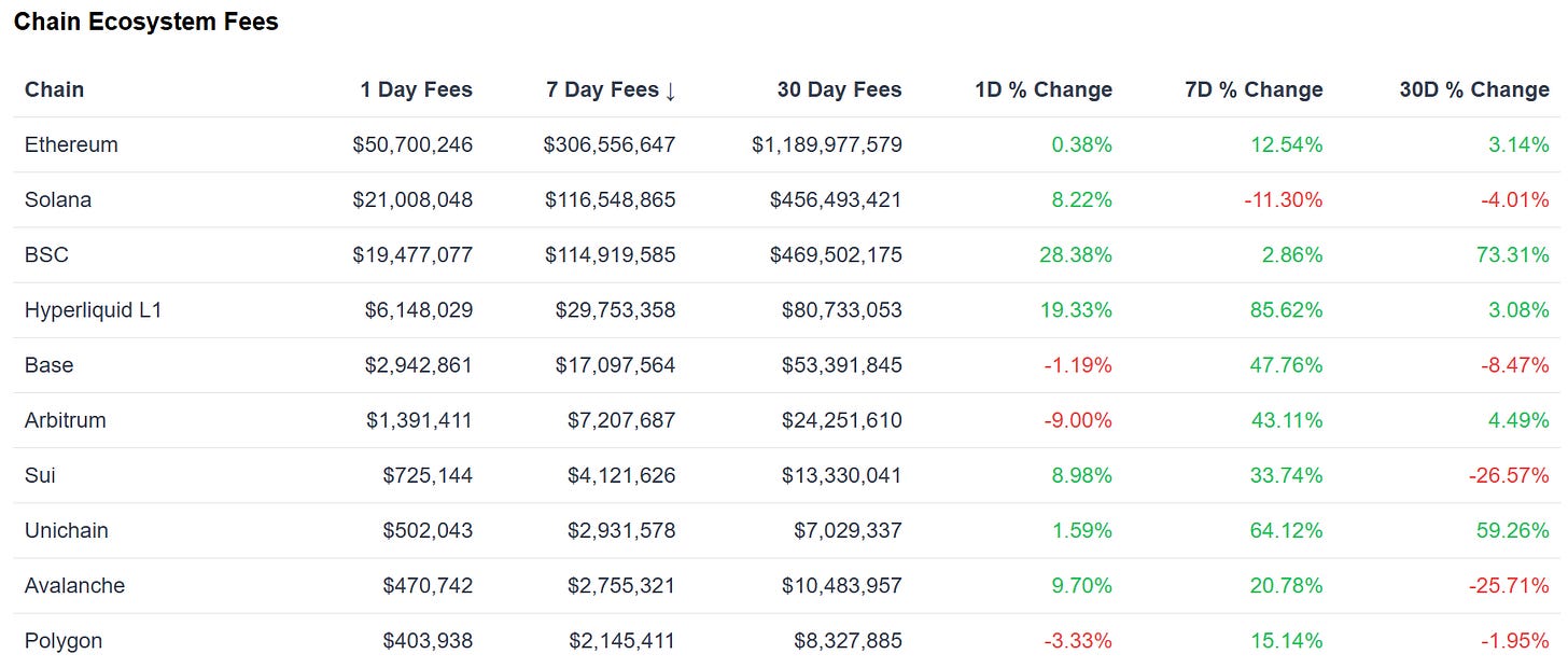 Other chains Base, Arbitrum and Unichain all saw over 40% growth in chain ecosystem fees over the last week.