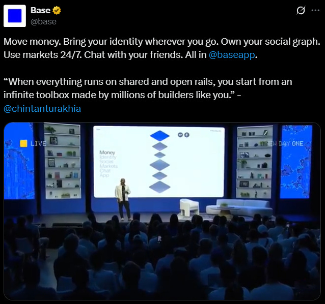 The Base app combines payments, social media & group chats, trading and mini apps into a single hub on Base.