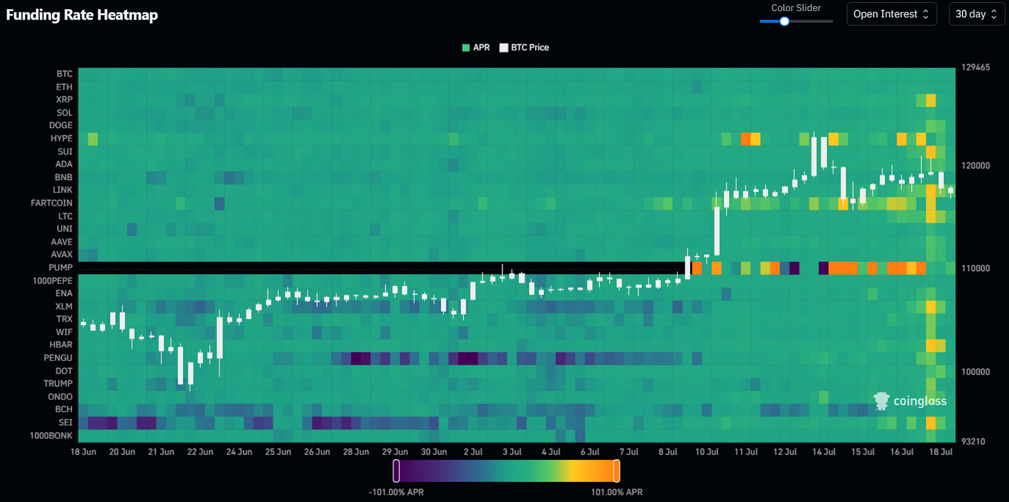 Brighter colors indicate elevated funding rates for longs, and darker colors indicate low or negative funding rates (indicates large short positions).