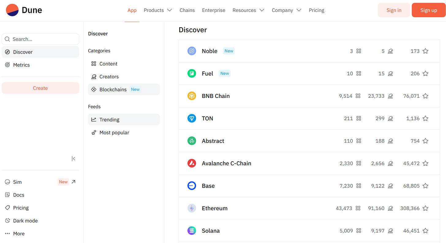 Dune users creating new dashboards to track metrics can be a good indicator of what chains are increasing in popularity.