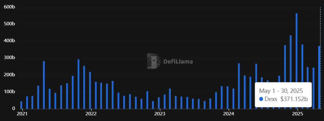 May is shaping up to be one of the biggest months for DEX volume ever. It’s already the 5th highest, and the month isn’t over yet.