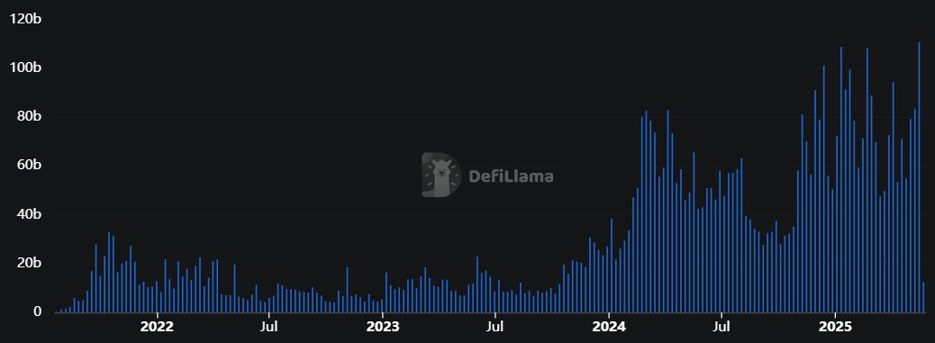 The past several days have seen some of the highest onchain DEX volume since January, and the third highest week of recorded volume.