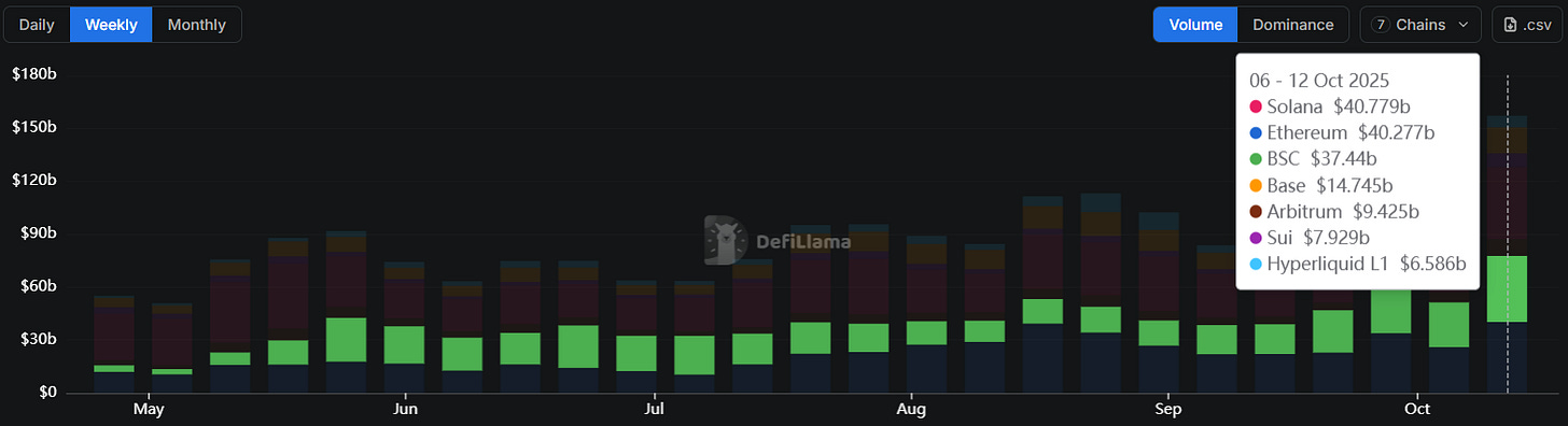 This time last year, BNB Chain was only transacting a fraction of total DEX volume.