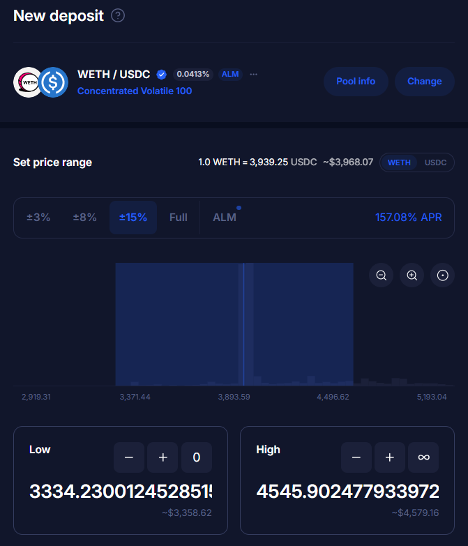 Select your desired price range - 15% has a good yield and captures more volatility, while 3% & 8% ranges have higher yield (capturing less volatility.