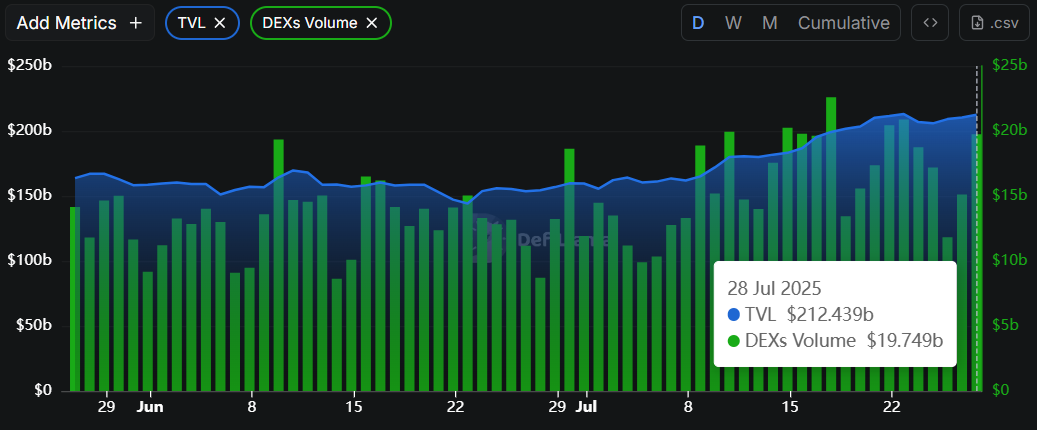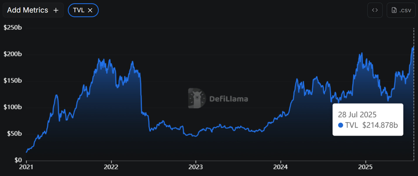 Despite this, total DeFi TVL (including liquid staking) is still rising, hitting another all-time high of $214b.