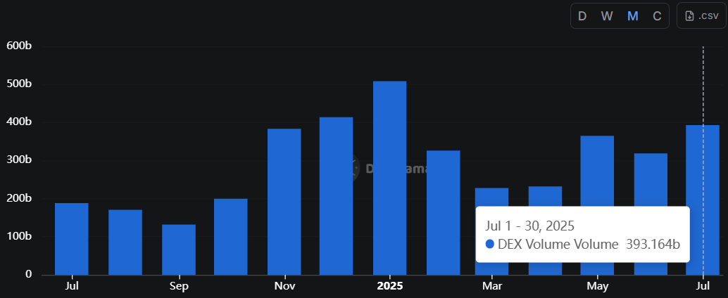 Onchain DEX volume totaled $393b, the third highest monthly volume on record