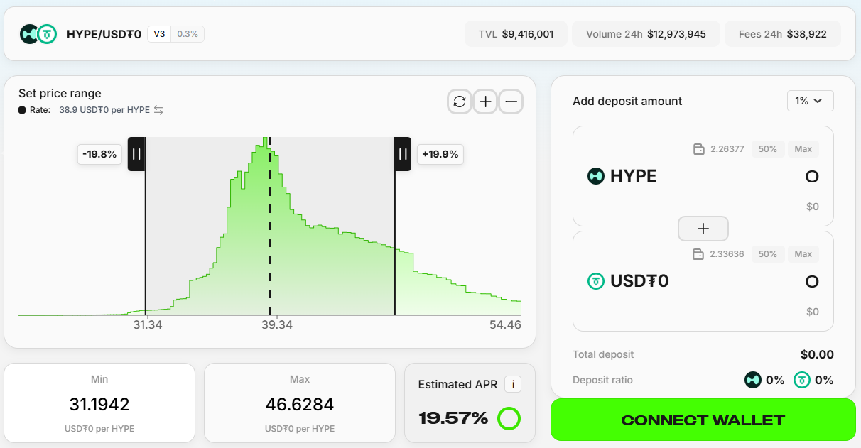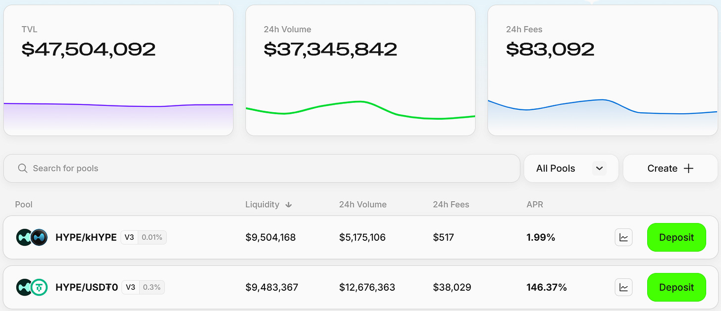 The HYPE/USDT0 pool is earning lots of fees at this moment. That can and will change, but for now, the APR is solid.