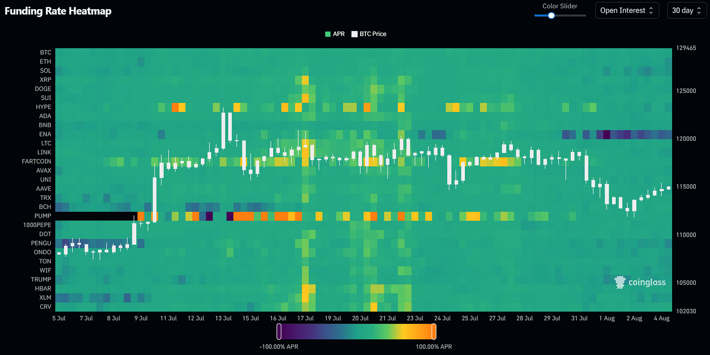 Looking at the 30-day funding rate heatmap, we can see that the market was running a little too hot.